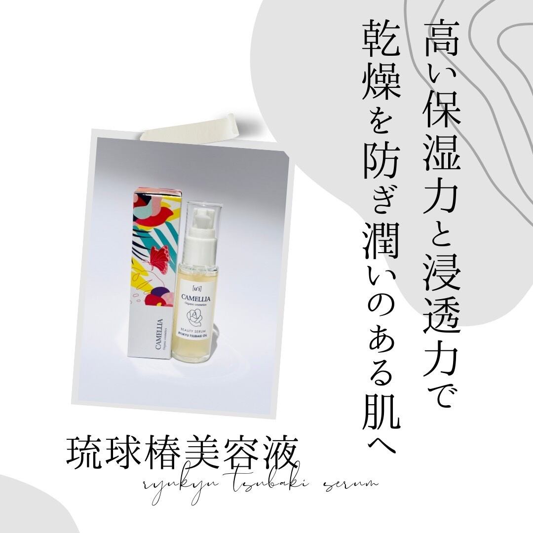 沖縄の天然由来原料7種類をバランス良く配合。ヒアルロン酸も配合し、高い保湿力の持続を可能に。また、世界の椿科の中でも唯一香りの高い琉球固有の椿『ヒメサザンカ』の香りを6種類の椿油をブレンドし再現。リラクゼーション効果もある美容液。